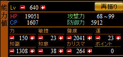 こちらは Lv640で、ステを健康全振りにした場合のステ。